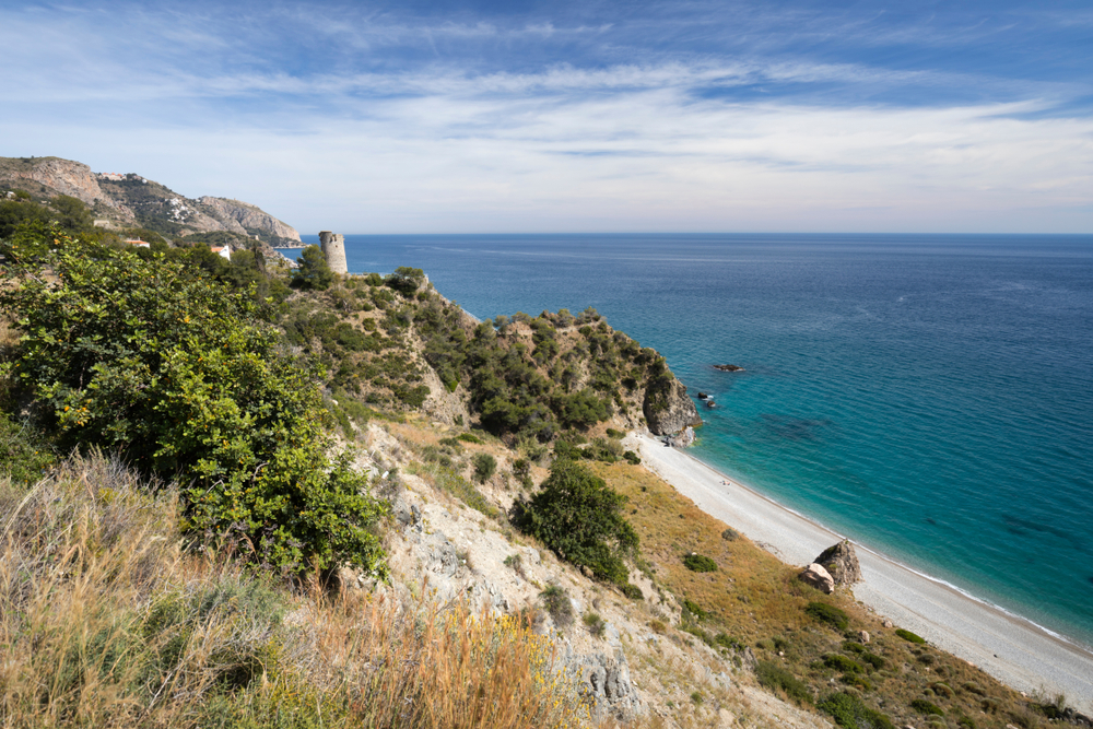 Situada en una zona protegida, la Cala del Cañuelo, es una pequeña playa en un paraje natural único. Este arenal de grava tiene una longitud de unos 350 metros.